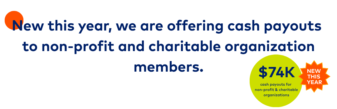 We are thrilled to announce a cash pay-out of $74,000 to non-profits and charitable organizations in 2025! This pay-out provides access to funds so you can continue your vital work in our communities. This financial support is a testament to the value of your contributions and a commitment to empowering you to make an even greater impact. Thank you for your unwavering commitment and for being a beacon of hope and progress in our world.
